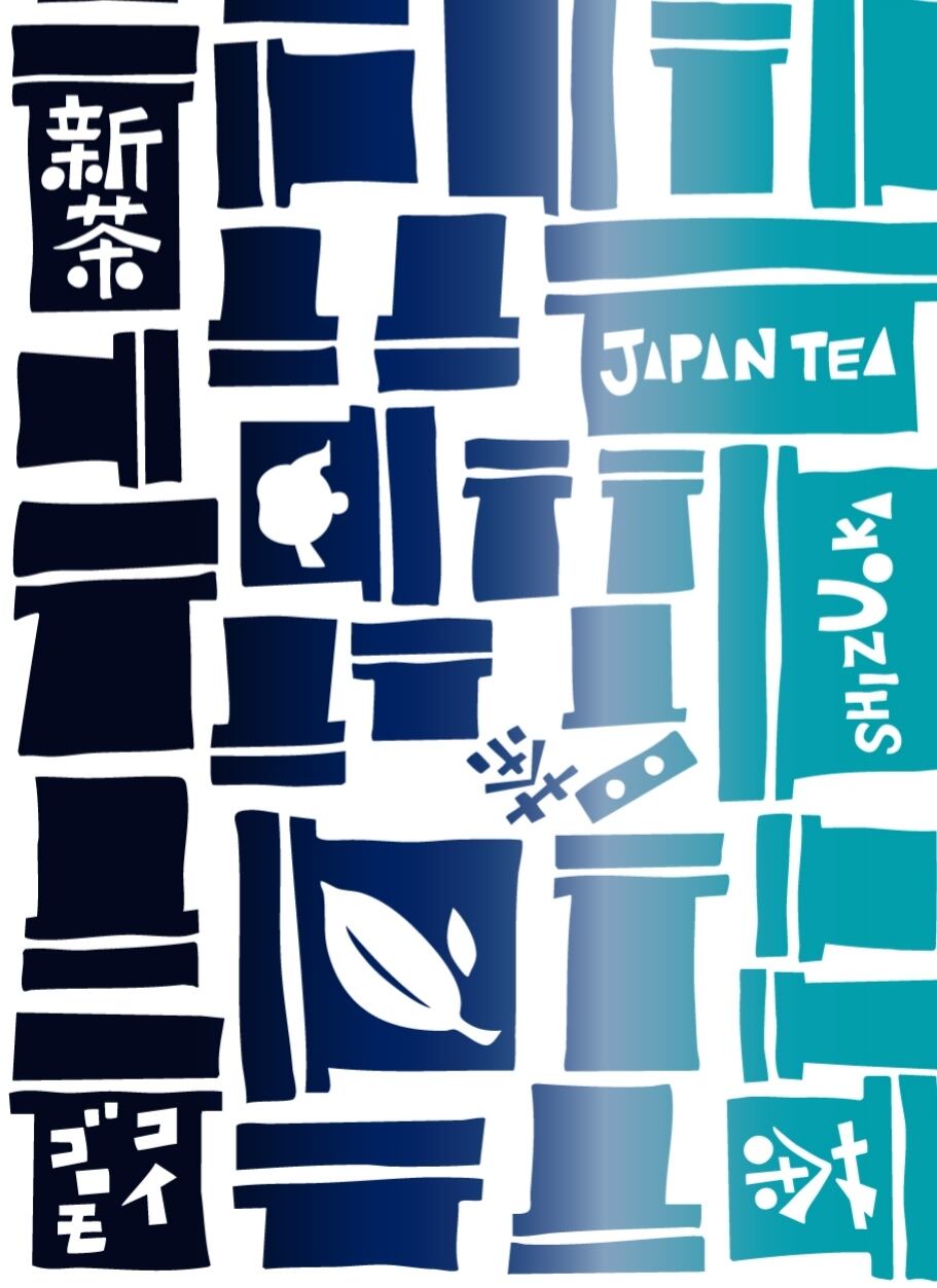 茶箱を積み重ねたような背景のパターンの中に、蘭字の要素がコラージュされている構成が、お茶貿易の賑わいとして伝わったら嬉しいです。