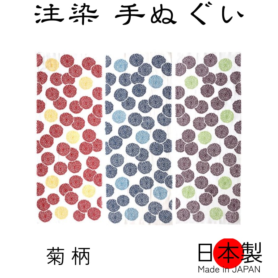 注染手ぬぐい 日本製 菊の花柄 手拭い 1枚 木綿 和柄 和風