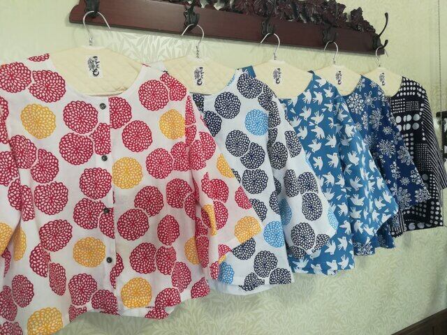 SALE☆手ぬぐいブラウス【はと柄・水色】