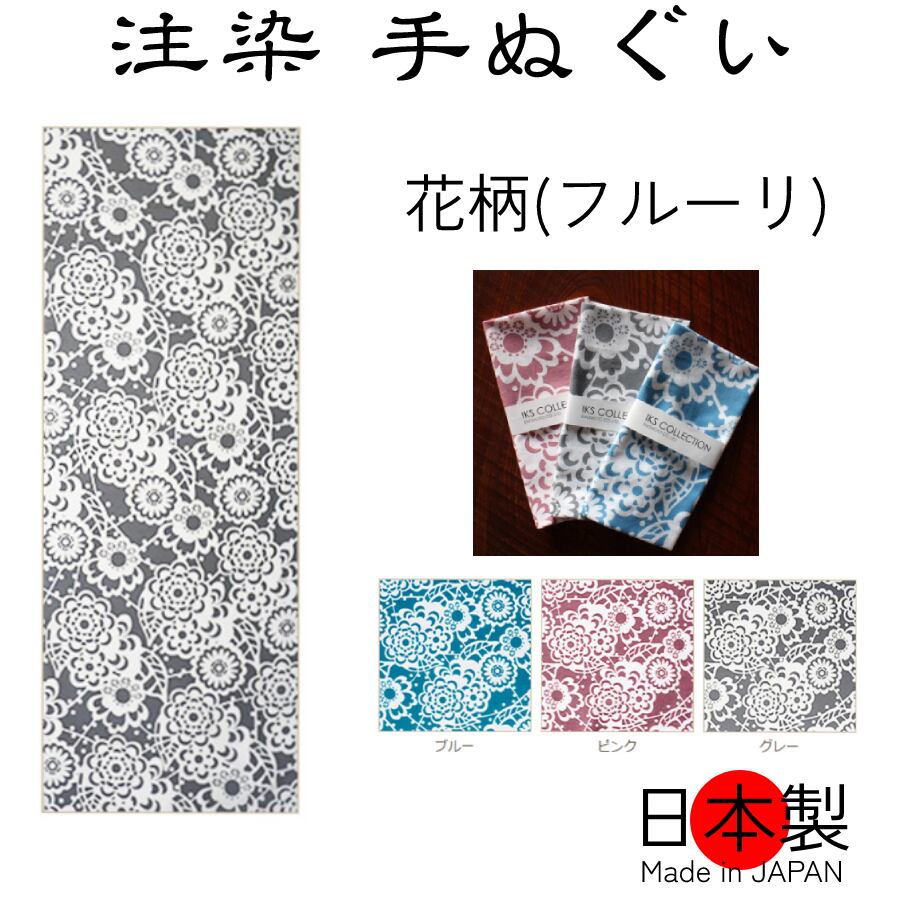 注染手ぬぐい 日本製 花柄 フルーリ 手拭い 1枚 木綿 和柄 和風