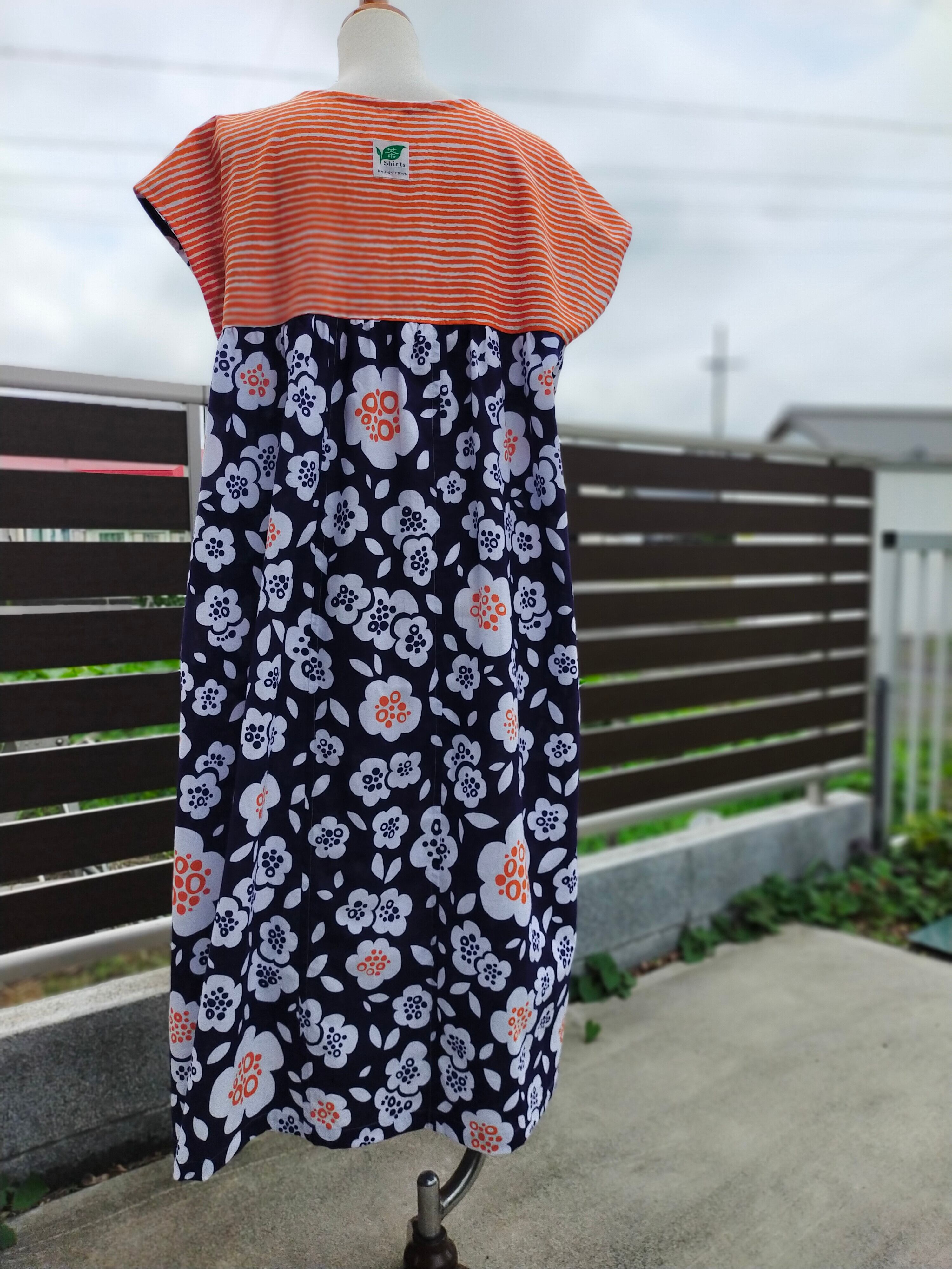 ※受注生産※手ぬぐいワンピース【茶の花柄・紫&縞柄・オレンジ】