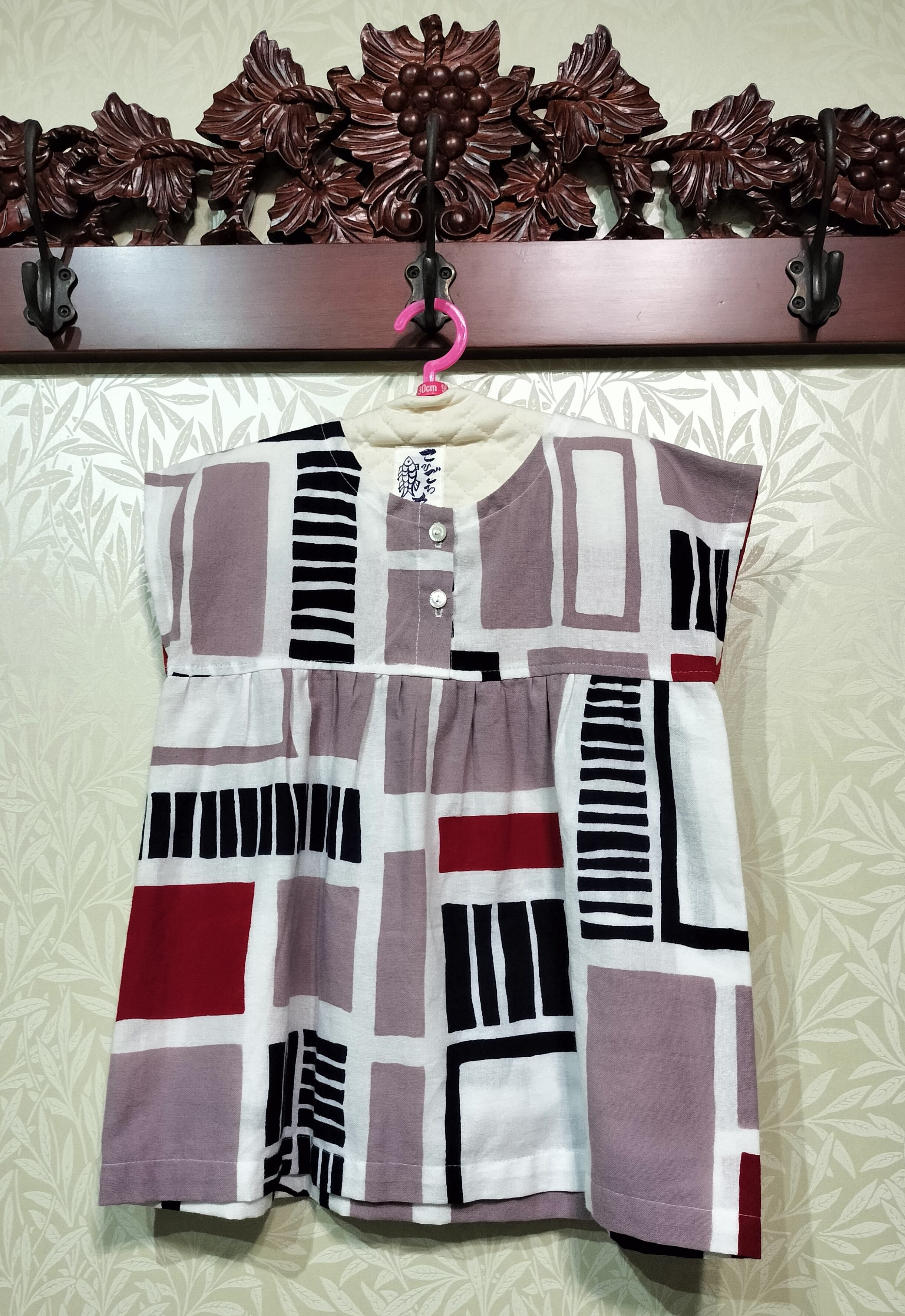手ぬぐいワンピース90サイズ【茶畑柄紺✕あか】茶Shirts