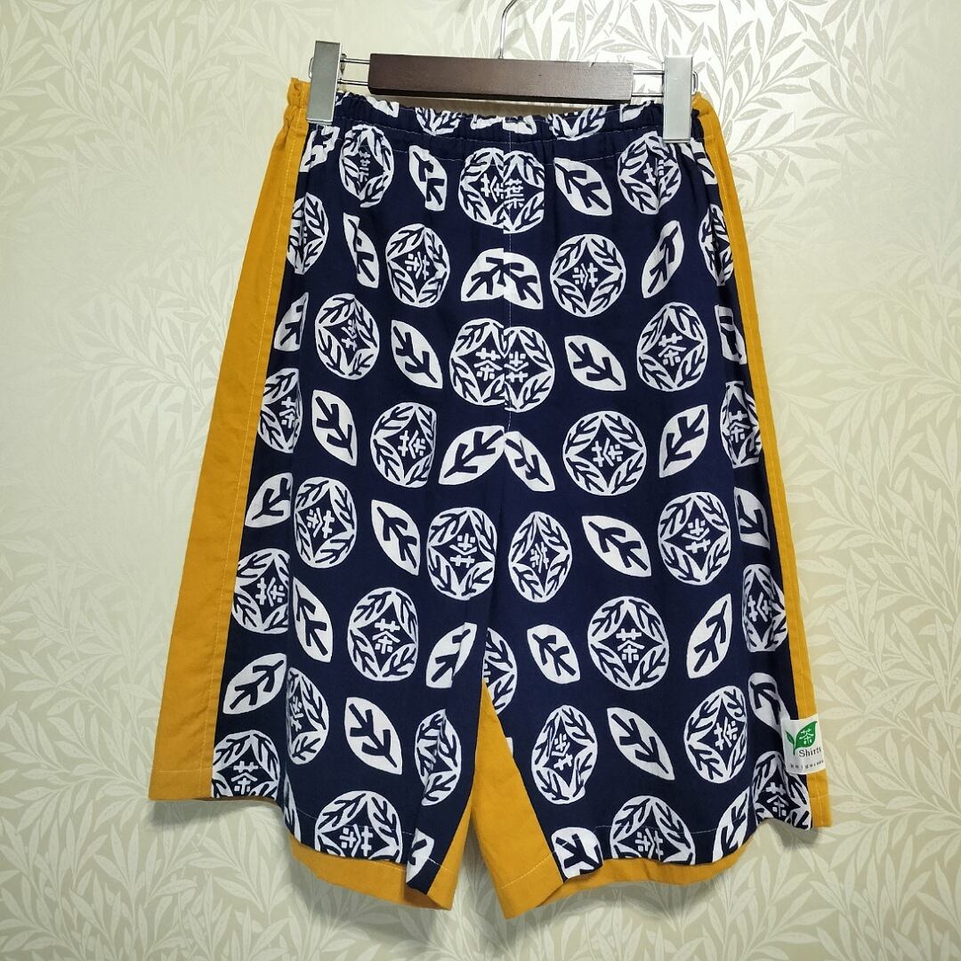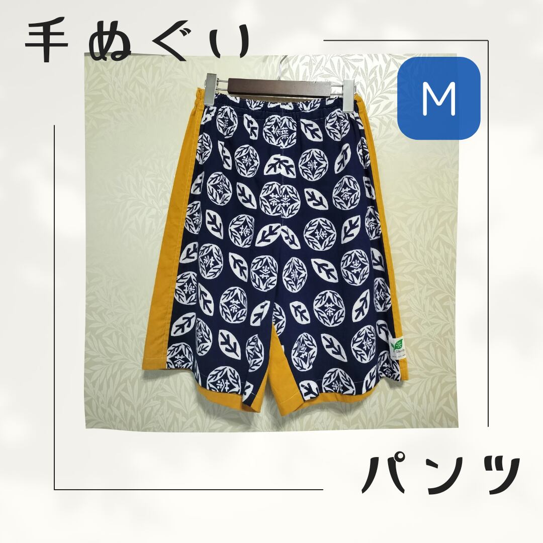 手ぬぐいパンツ・Mサイズ【葉の茶・紺✕マスタード】