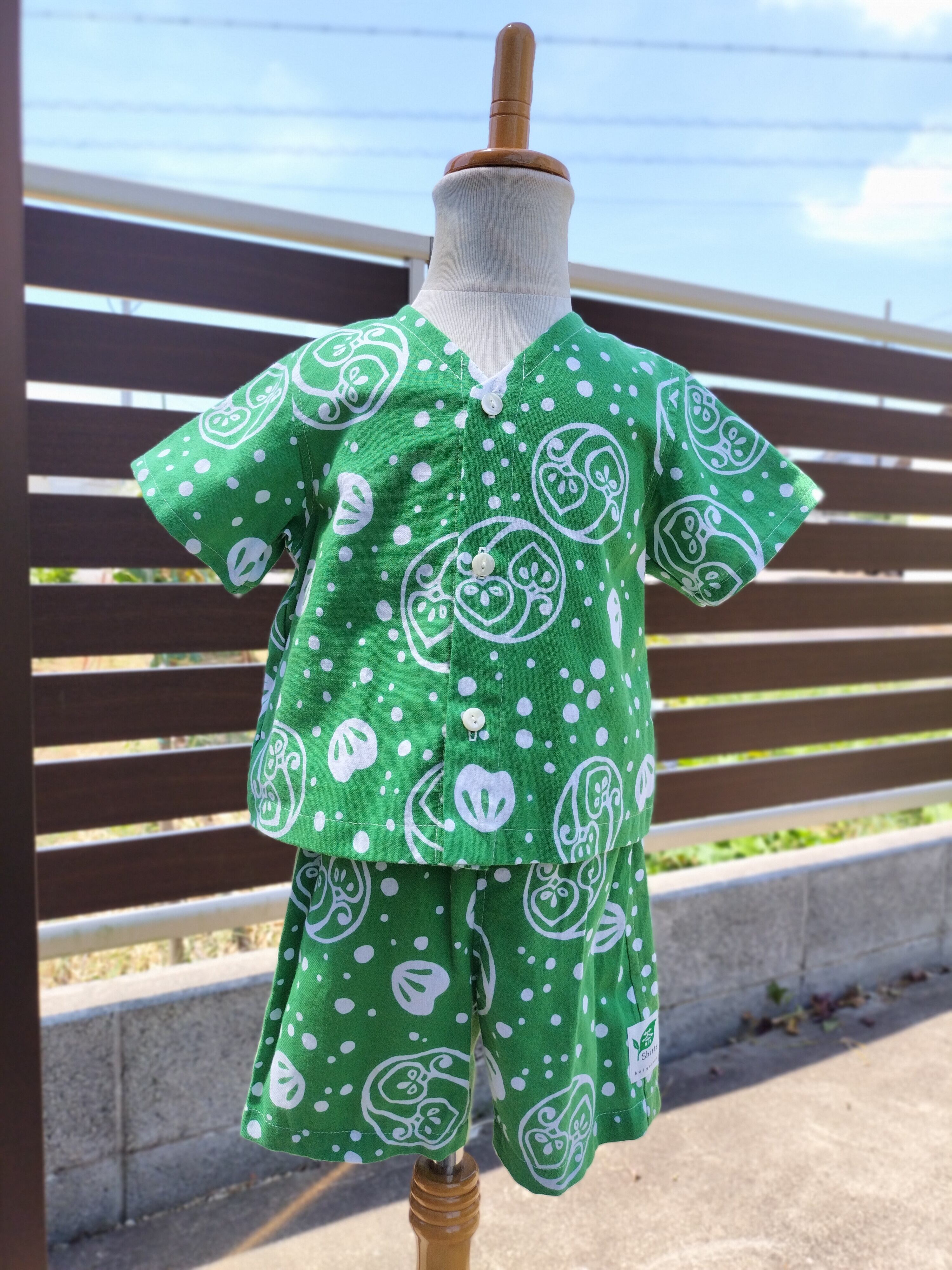 手ぬぐいシャツ&パンツ100サイズ【茶の実・みどり】