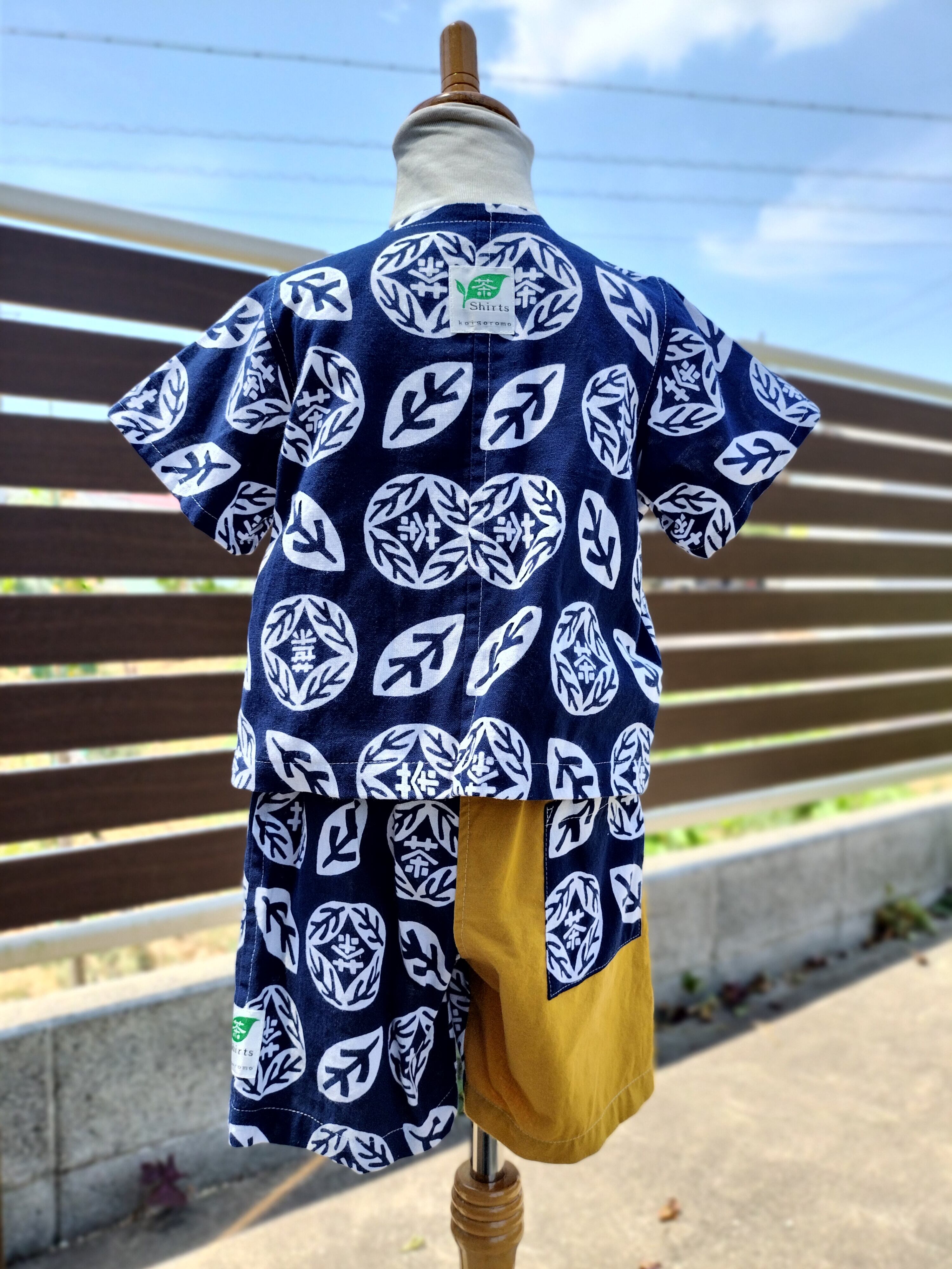 手ぬぐいシャツ&パンツ100サイズ【葉の茶・紺】